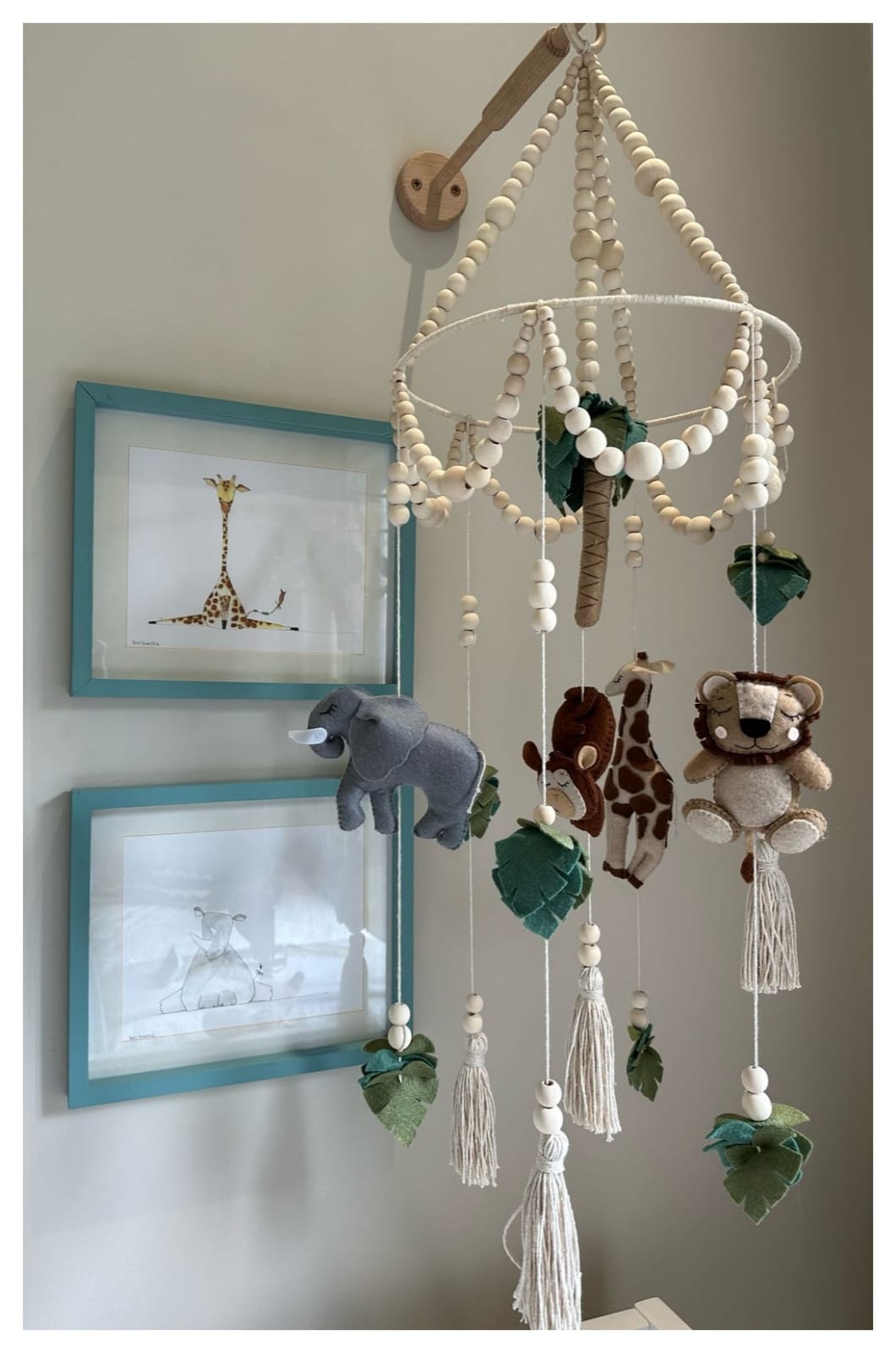 Our Oh So Boho Beaded Safari Mobile is a wonderful addition to any nursery. The gentle colours make it a beautiful piece to enhance a neutral inspired Nursery theme.